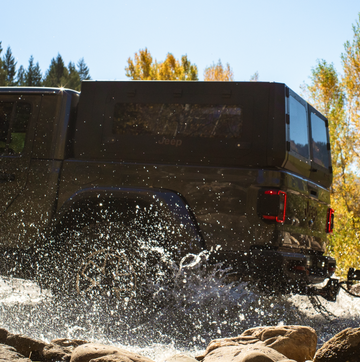"The two-wheel trailer's design was inspired by military surveillance units and features an independent torsion suspension with 17 inches of ground clearance, which is even more than the Jeep® Wrangler Rubicon provides."