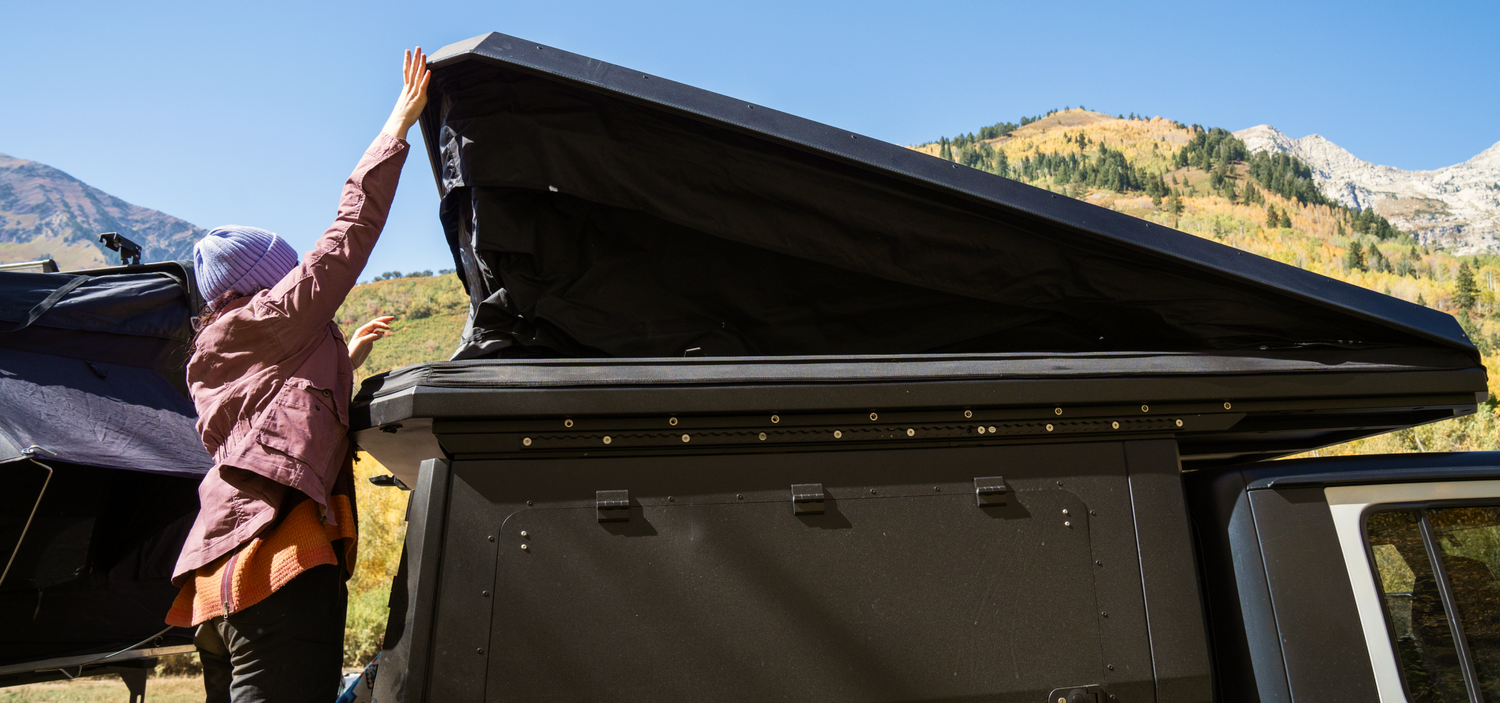 The Jeep® By ADDAX Gladiator Camper combines the utility of the Cap and the Clamshell Tent with the MOD-3® system. This allows you to travel between your tent and truck bed, or even combine the two spaces into a single larger space.